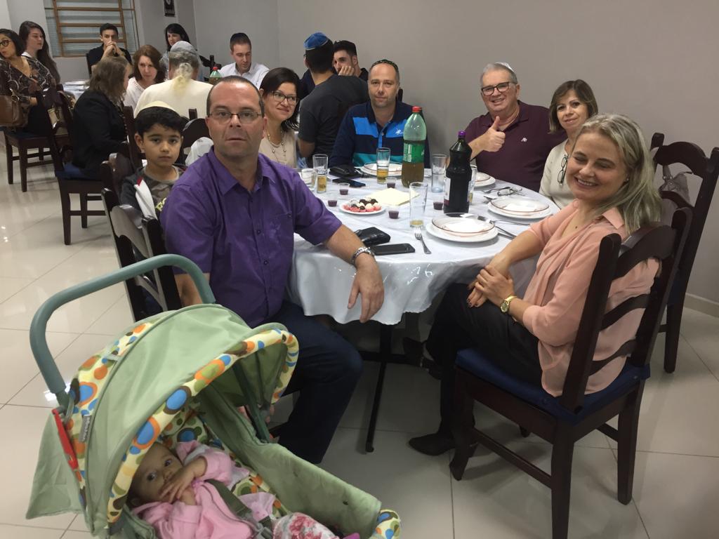 Desta vez, esta importante data culminou com o Shabát, tendo um duplo sentido a todos os presentes. O evento contou com um bom número de pessoas da Comunidade local. O Líder Espiritual da Comunidade Israelita, Sr. Berel Natan Engelman, agradeceu e valorizou a presença de todos. Na sequência, o jovem David Reise Gasparoni foi muito feliz em pronunciar-se, dizendo entre outras coisas que o nosso povo é um povo “teimoso”, aguerrido e determinado, e que geração após geração vem se mostrando quanto é possível dar continuidade.